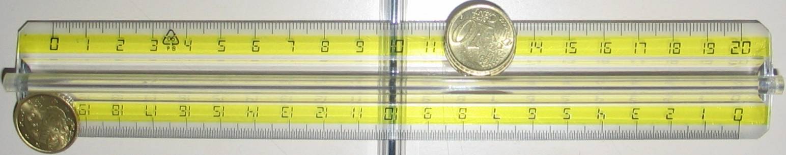 Ratti: Si nota che per determinare la posizione del centro di una moneta sulla scala, invece di guardare per cercare una riga che faccia da asse, o equivalentemente al punto piu' estremo nella direzione delle righe, conviene guardare le righe che la contengono, e poi trovare il centro dividendo in 2.