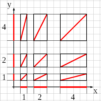 x=t y=L La lunghezza del moto raddoppia salendo di 1 riga Il tempo del moto raddoppia a destra di 1 colonna.