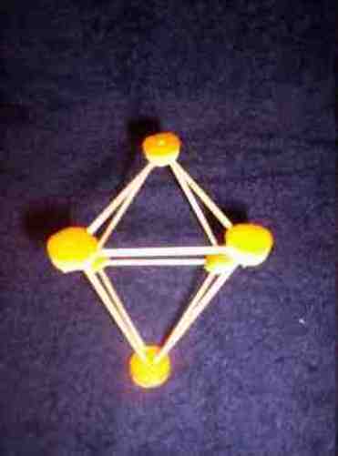 La prima foto evidenzia che c'e' un quadrato all'interno del tetraedro, quadrato che poi sara' la base delle piramidi che compongono l'ottaedro. Nella seconda e' completo l'ottaedro. Poi nella terza foto lo vediamo dall'altro.