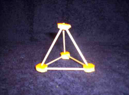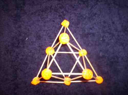 Il tetraedro regolare e' uno dei cinque solidi platonici, cioe' uno dei poliedri regolari e le sue facce sono triangoli equilateri. Esso presenta un angolo diedro di 70° 32'.