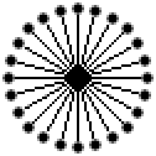 | Studio punti da mettere in cima al raggio, sulla circonferenza. Punti 4 colori: 000 555 aaa fff. S potrebbe anche dire 3 grigi-neri, poiche' il bianco-sfondo puo' essere cambiato con qualsiasi altro colore. |