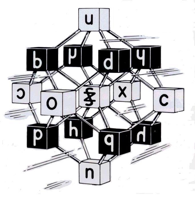 The Logical Garnet, a wooden model in which the symmetries of the full three-dimensional figure behind the Logic Alphabet can be seen.